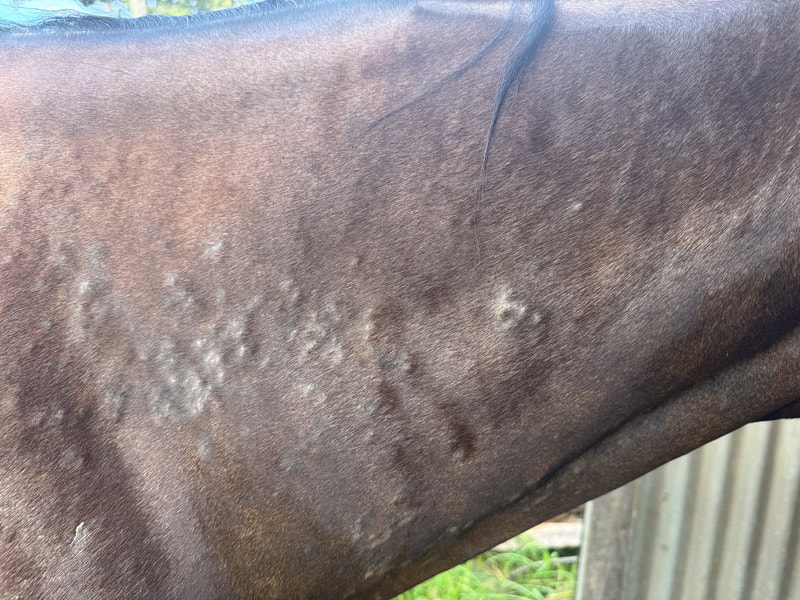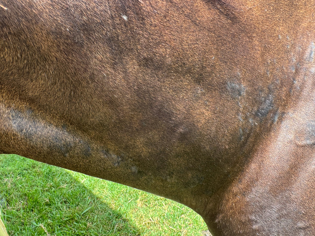 My little mare had been badly bothered by biting insects under her rug, leaving her with painful and irritated bites all over. After just 5–7 days of applying Equine Skin Relief to the affected areas each evening, her skin noticeably soothed and showed remarkable healing progress. |